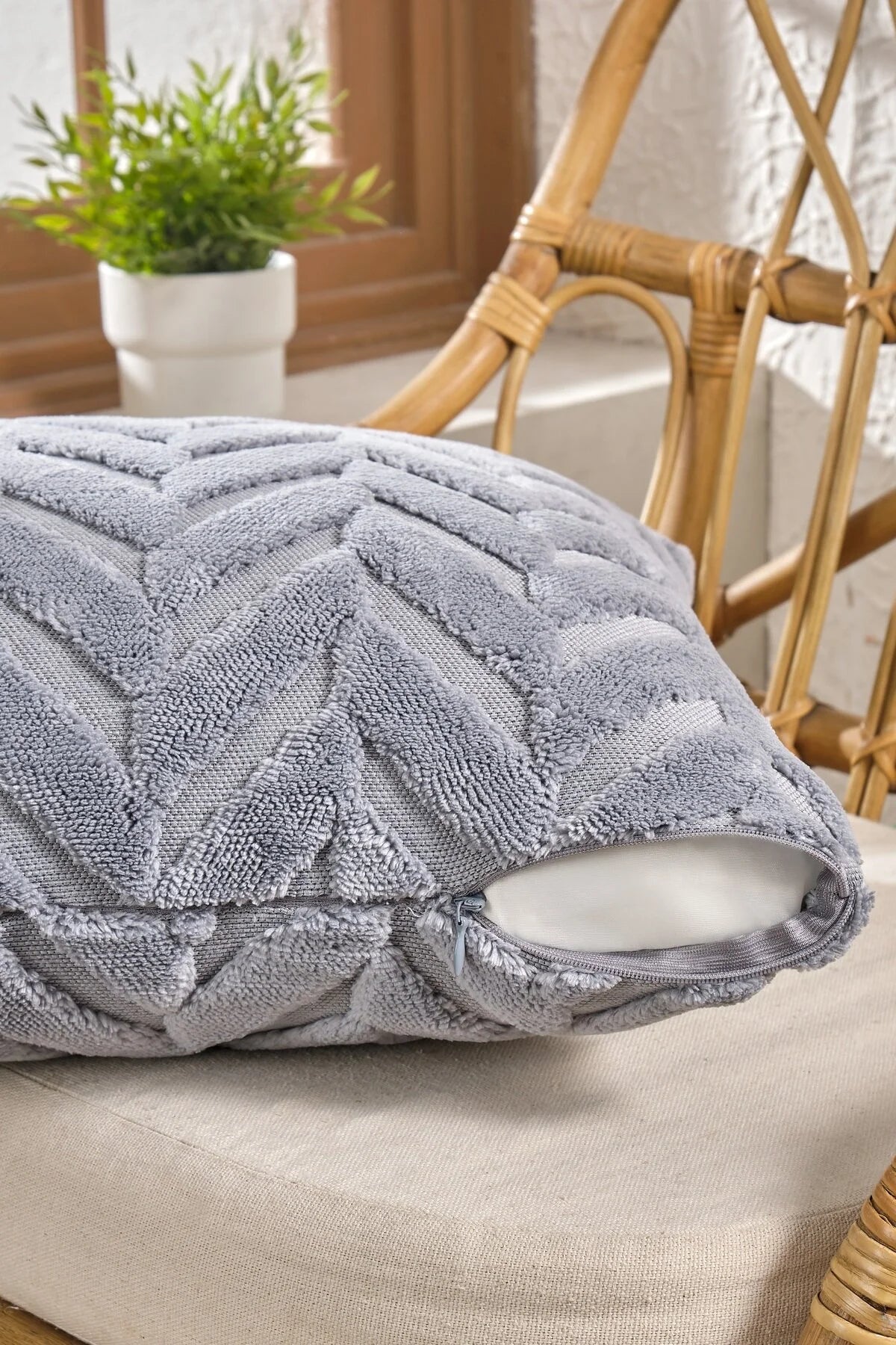 Gri Başak Desen Bohem Özel Tasarım Punch Panç Desen Dekoratif Kırlent Kılıfı